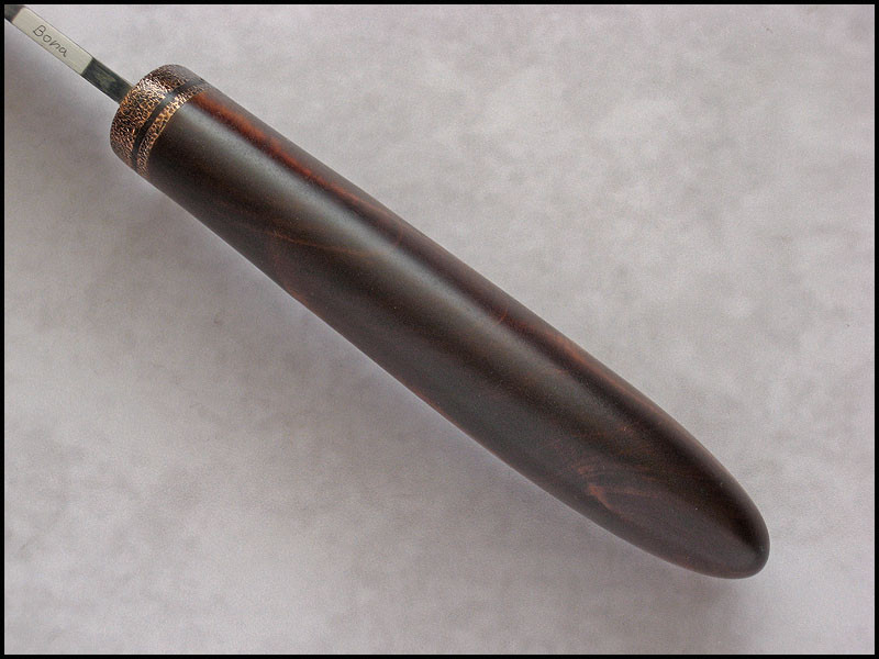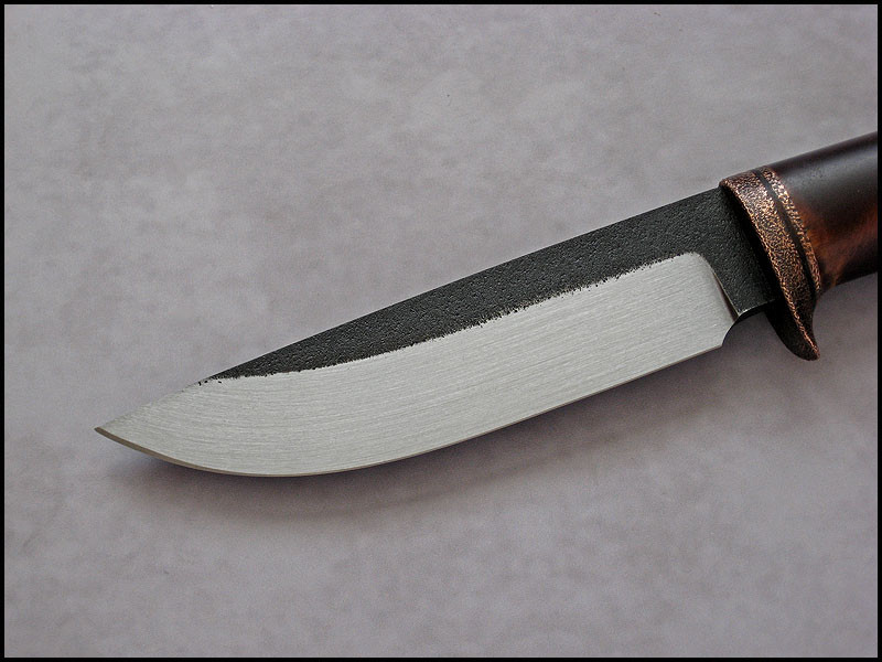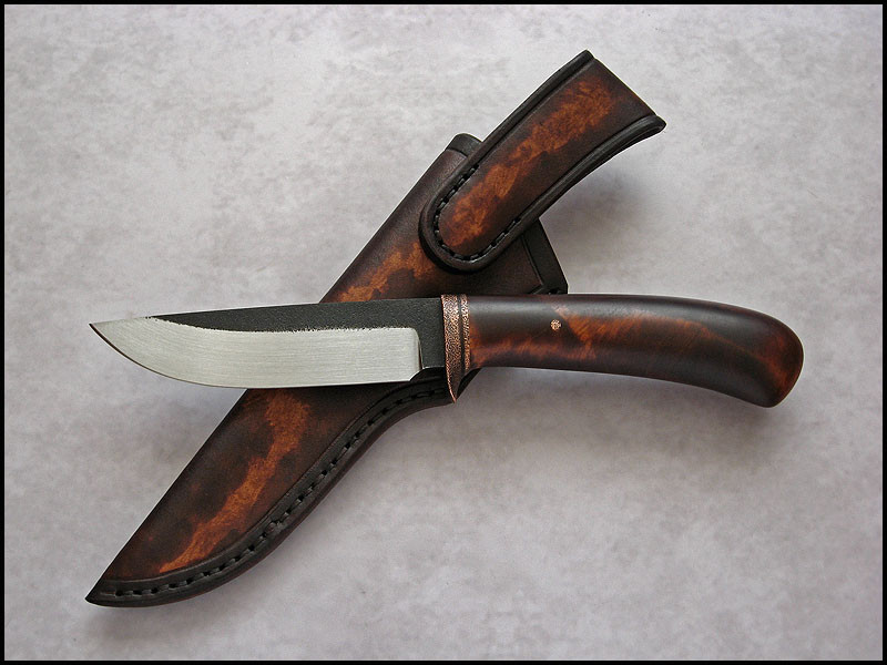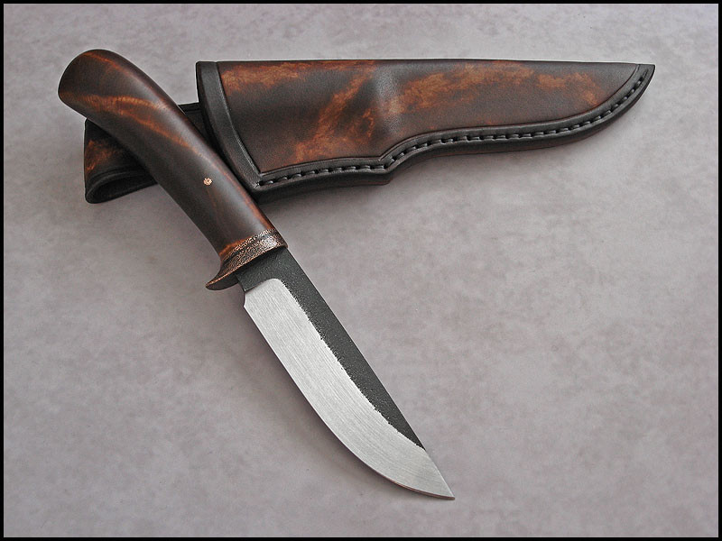 Another CopperField for sale. steel high carbon NC6 / 3.7 mm [0.146"] length 242 mm [9.527"] blade 118 mm [4.646"] handle dyed Birch, copper sheath leather Price - $179 plus $11 for International Priority Mail SOLD