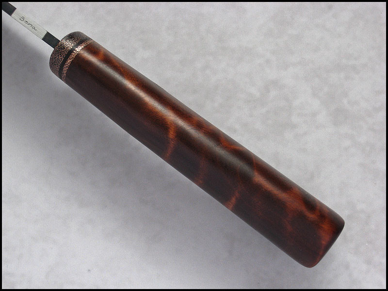 Bona The Art of Harmony Feedback: +31 / =0 / -0 Joined Apr 27, 2006 Messages 1,158 Jun 7, 2015 #1 Hi. New CopperField for sale steel high carbon NC6 / 3.7 mm [0.146"] length 243 mm [9.567"] blade 120 mm [4.724"] handle dyed Birch, copper sheath leather Price - 195 US Dollars. Price included International Priority Mail SOLD Last edited: Jun 9, 2015