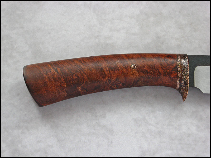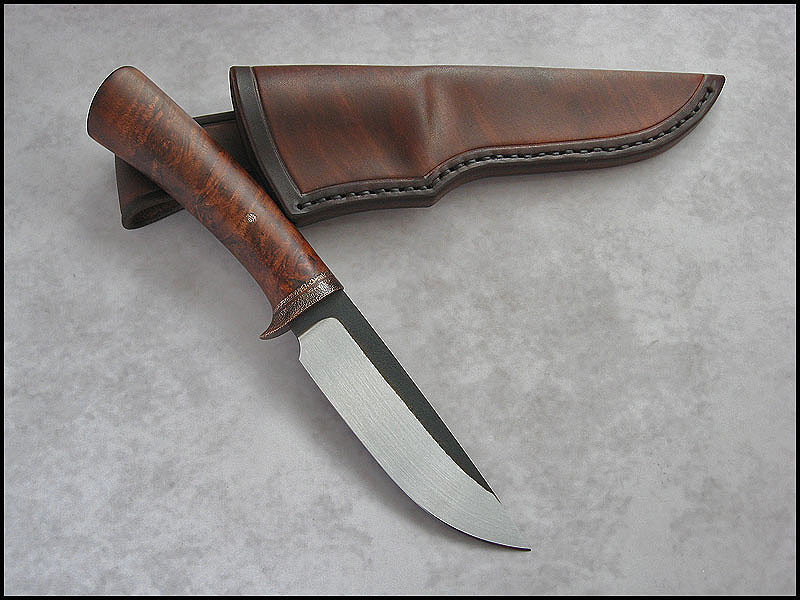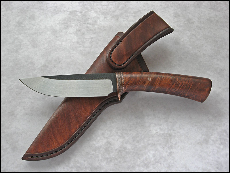 Next one. steel high carbon NC6 / 3.7 mm [0.146"] length 242 mm [9.527"] blade 120 mm [4.724"] handle dyed Maple, copper sheath leather Price - 200 US Dollars. Price included International Priority Mail SOLD