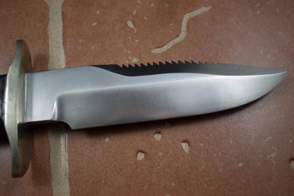 Hello ladies and gentlemen. My father recently passed away and while i was boxing up his estate, i came across this randall knife amongst his firearms. I've tried to identify the model/year/price but the best i can come up with is it has a double hilt, sawback, stainless, and possible black micarta handle? Any help is appreciated, unfortunately i need to sell a few of his things to pay for funeral costs, and this is one of those items. If you need any better photos, please let me know.