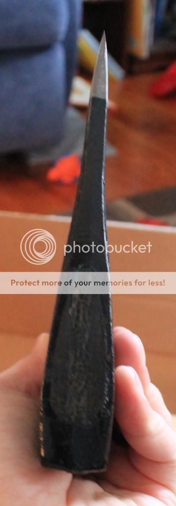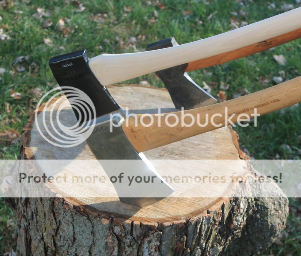 I thought I would do a little Preview/Review on this new offering from Council Tool. I have heard a lot about this axe from the past. When I was looking for an axe last year I saw a lot of posts about it, but Council Tool had stopped making it at that time. Since then they have reintroduced it. Since I'm an axe addict I thought I would get one from Curtis at Omahaknife.com. I ordered my Bad Boy's axe from him last year and I really liked the personal touch he adds to the buying experience. He offers a sharpening service which really makes these axe shine. He also offers a hand picking option, which in the pictures you will see really pays off. The handle I got was almost as perfect as you can get.