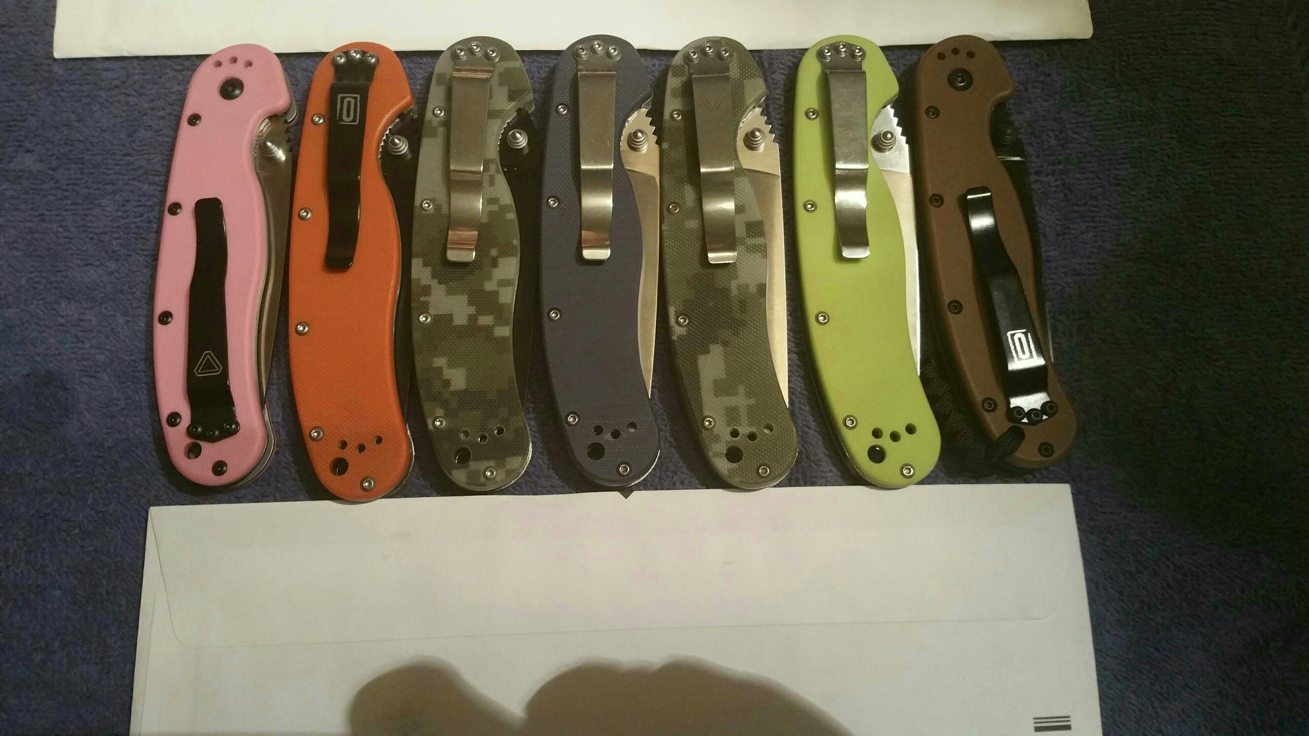Haven't taken them apart yet but one obvious difference is the handle length (pink and brown are real)I bought a digital camo, an orange, and a blue scaled version off ebay (rat 1 is my favorite knife). Mine are all marked properly, but I got suspicious when I moved the pocket clip and the holes were only tapped at the original location... going to disassemble and compare. If I find any other obvious differences, I'll post them here.