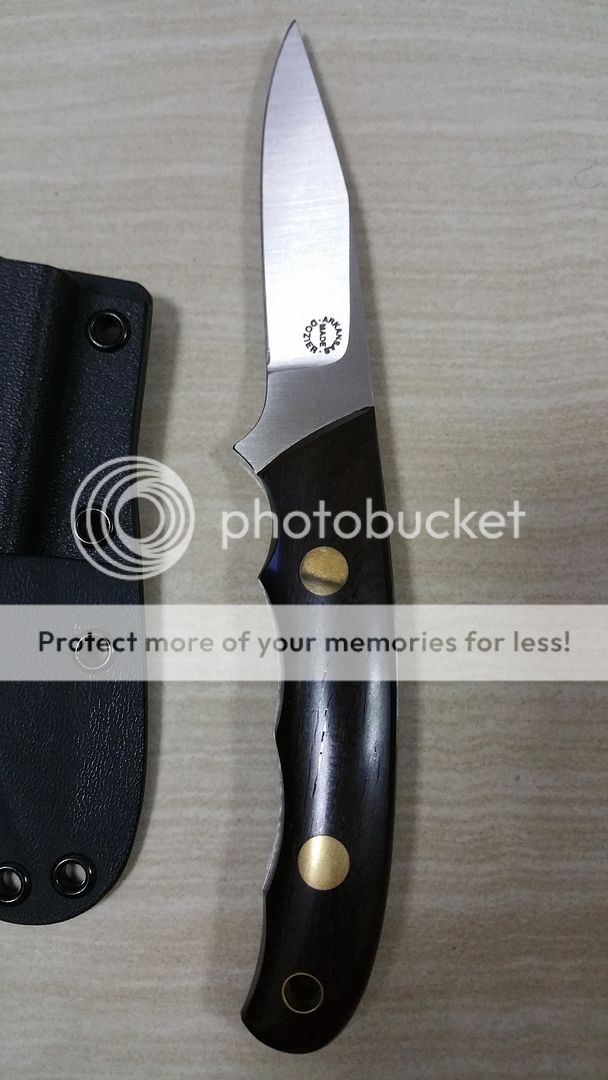 K-13 Dozier- 3" D2 blade, .125 thick. Ironwood handles with Dozier's horizontal kydex sheath. Never used, mint condition. $180+3.5% paypal fees