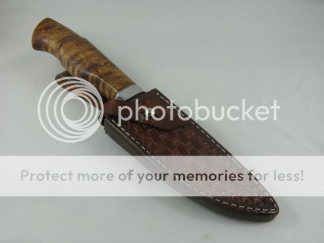 Sheath is handed made of 8-9oz dyed tooled leather