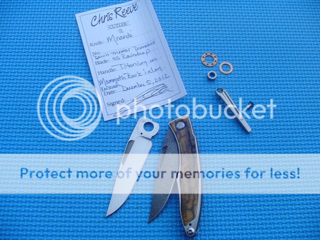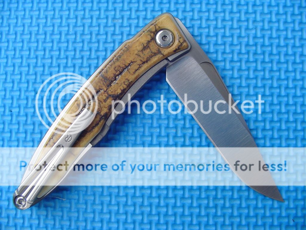 I am pretty much going to let this one do the talking its an incredible example of CRK grail! It has the show damascus show blade with and extra S30V blade and set of washers that you don't feel bad using. Neither have been used and the knife is in awesome shape. Leather pouch is included as well as extra washers for s30v blade and the old style Ti clip. Original box and cloths is included as well of course. This is really a great package. I just hope it goes to a happy home!