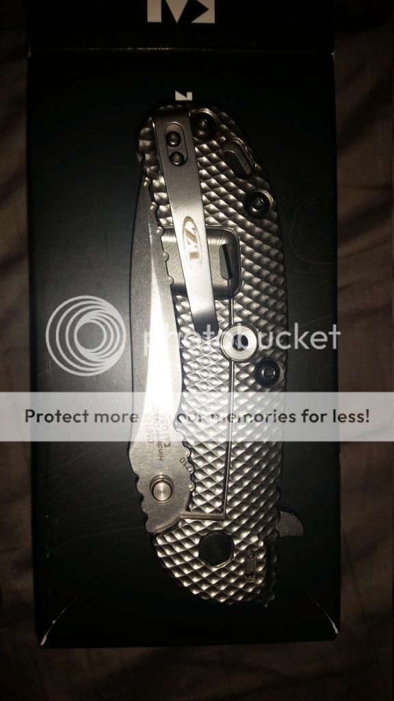 First up is a CRK Sebenza 25, born on date is 4.22.2014. This knife has been carried and used lightly, never abused. The titanium handles have a small amount of wear on them, as well as a little on the pocket clip. Centering is great, lock up is excellent. Very smooth opening and closing. This knife includes the original box and cloth as well as all paperwork and stickers. The lanyard has been removed and will not be included. I am asking $330. SOLD