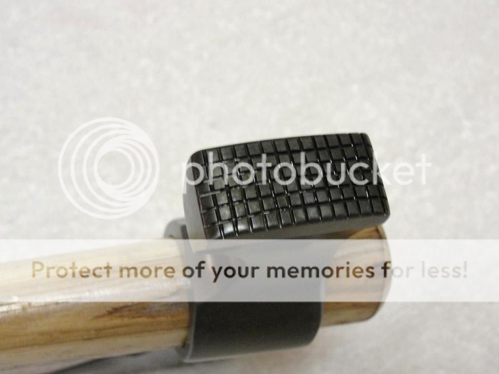 Before I stripped off the paint, I used a sharp set of dividers to mark off the lines so that they would be fairly even throughout the hammer poll area. I decided for now not to bring the squares to any sort of point, as I found that they work quite well like this,....with just the approximately 90 degree cuts and sharp edges. Also, diamond points would chew up plastic or aluminum stakes much more, and this works fine as is.