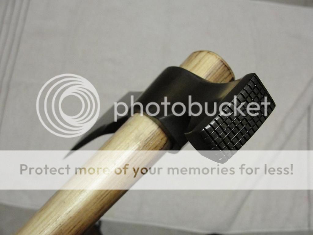 The first thing that I did was add some "teeth" the the hammer poll, as on reviewing a post on another T-Hawk having that feature it really DOES aid in keeping hand made wooden/branch tent stakes and animal trap stakes from slipping off. (especially when the wood is wet!)