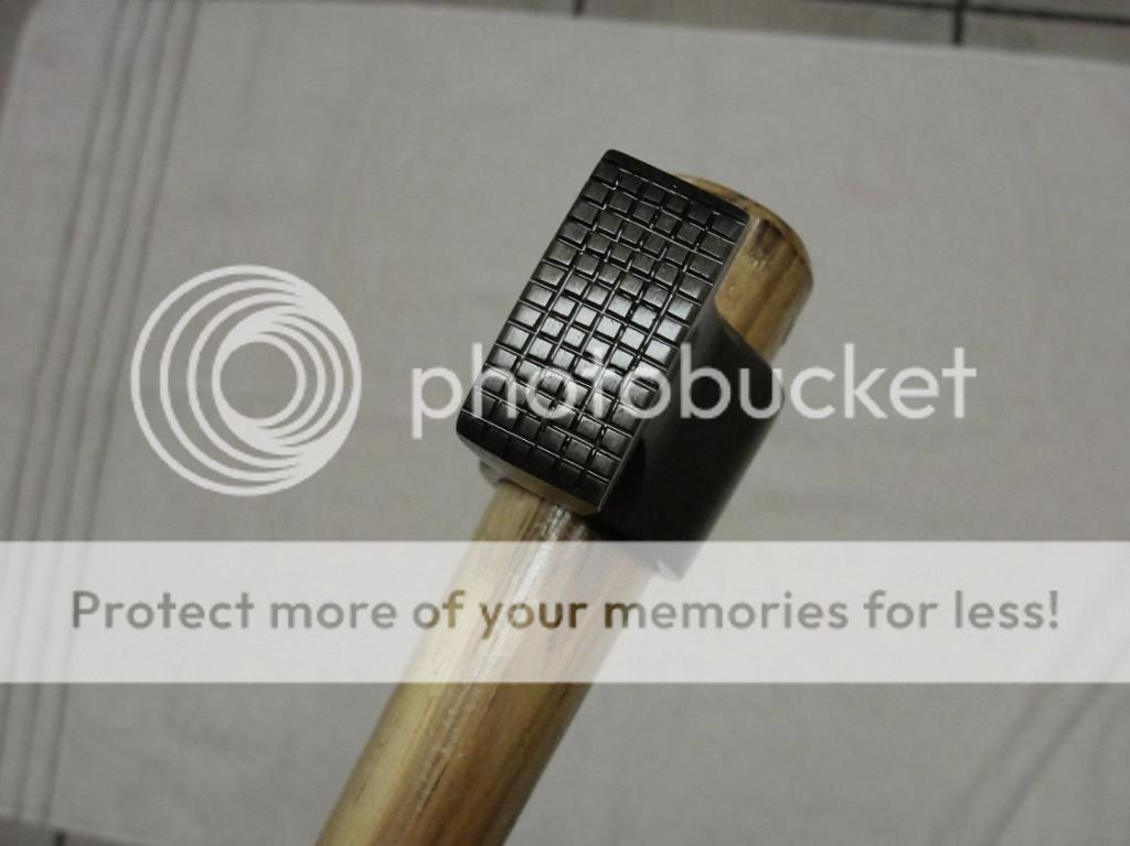 The hammer poll was "checkered" simply but effectively with just a 1" cut off disc in my hand held Foredom flexible shaft machine,....much like a Dremel but more of a pro level construction. (used one over 35 years in Jewelry repair) Efforts were made to keep the depth of cuts as even as possible for cosmetic reasons, but not functionally important of course.