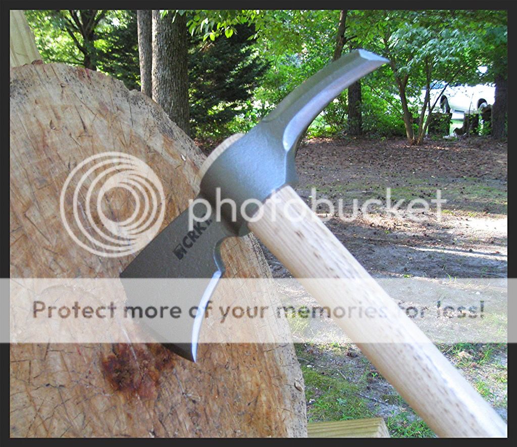 The T-Hawk has primary and secondary edge bevels that are flat ground. The 19.5" wood handle is made in the USA from Tennessee hickory. It's sealed with a clear lacquer coat. I think this tool is well suited for camping, wood work and general around the yard chores. It would also make a formidable weapon/entry tool if pressed into those roles. I like it a lot on first impressions and will put it to work soon. It does not come with a sheath but CRK&T makes a leather sheath that can be purchased separately. I paid $49 shipped for this Hawk. CRK&T makes another Woods hawk named the Chogan which has a hammer head instead of the spike. This setup may be better suited for some users.
