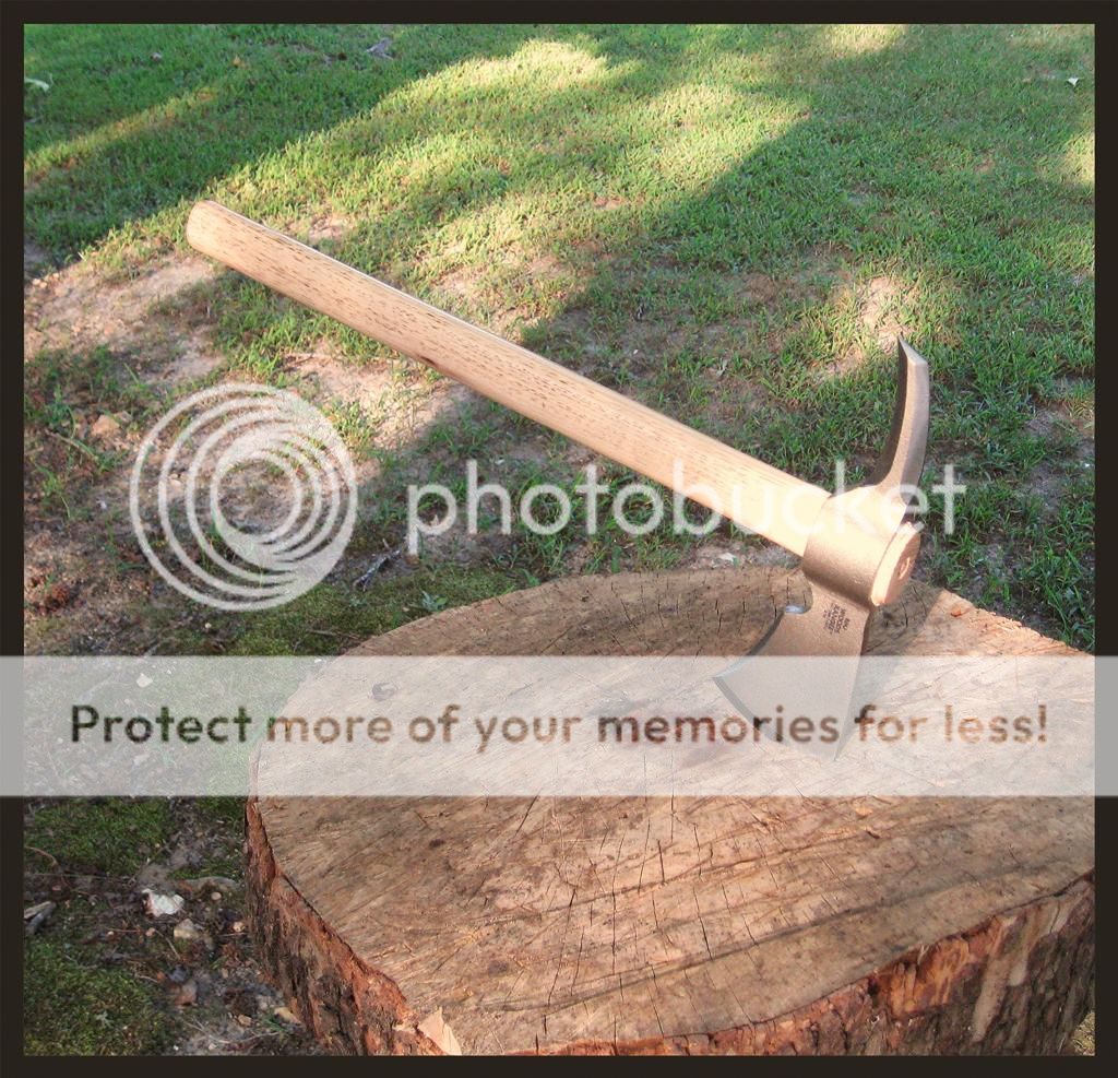 Just got this brute and I have not had a chance to test run it yet but on first impressions.....its a beast of a Hawk. The Woods Kangee is designed by Ryan Johnson of RMJ Tactical. The head is a very solid hunk of 1055 carbon steel. The factory edge was relatively sharp for a hawk. It is a heavy tool and those who want to throw it may find it a bit too heavy at almost 2lbs for that activity but it would hold up well to throwing.