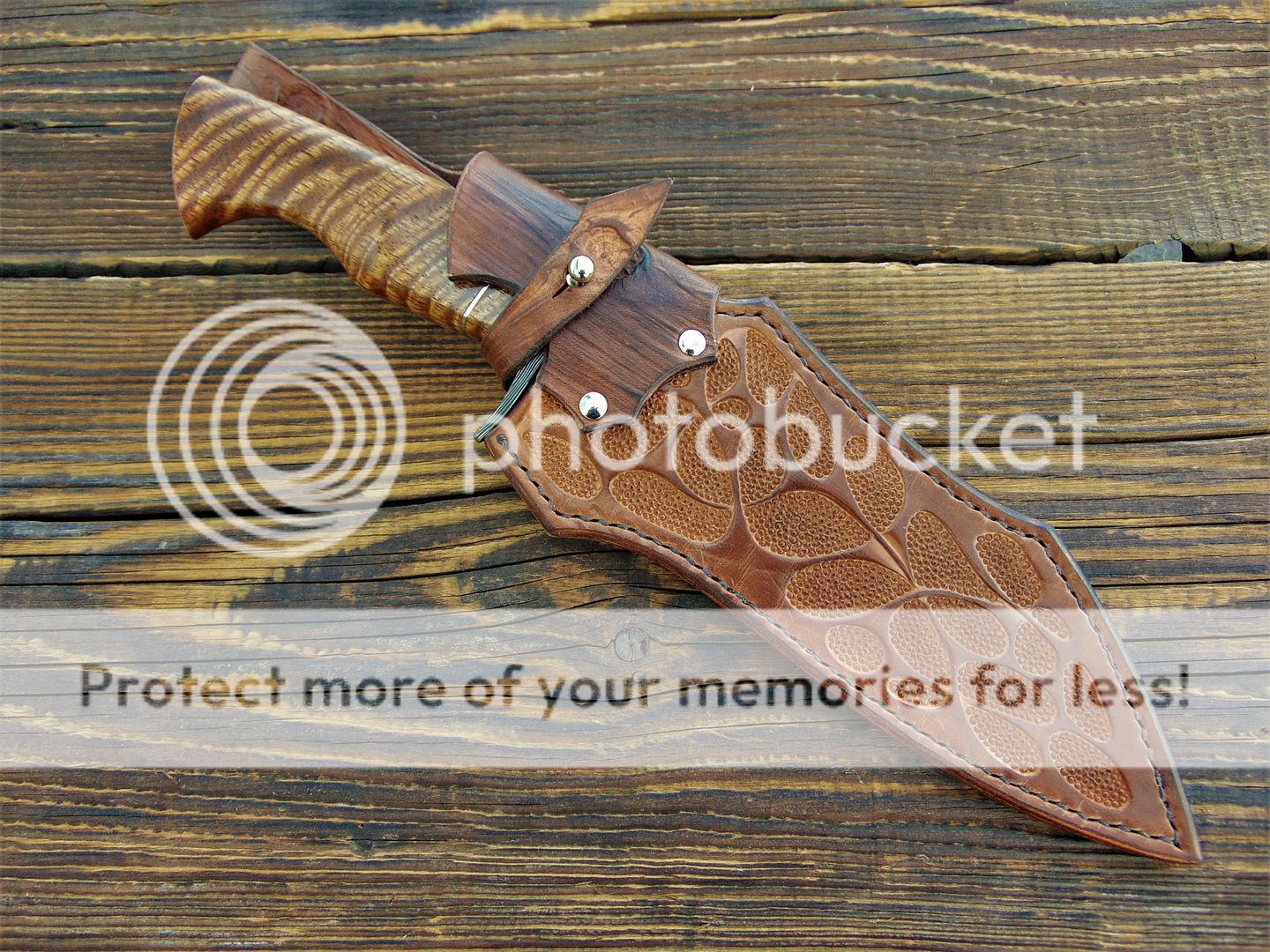 _The blade itself is made from damascus steel.(1095+52100+O1 steel use/400 layers)