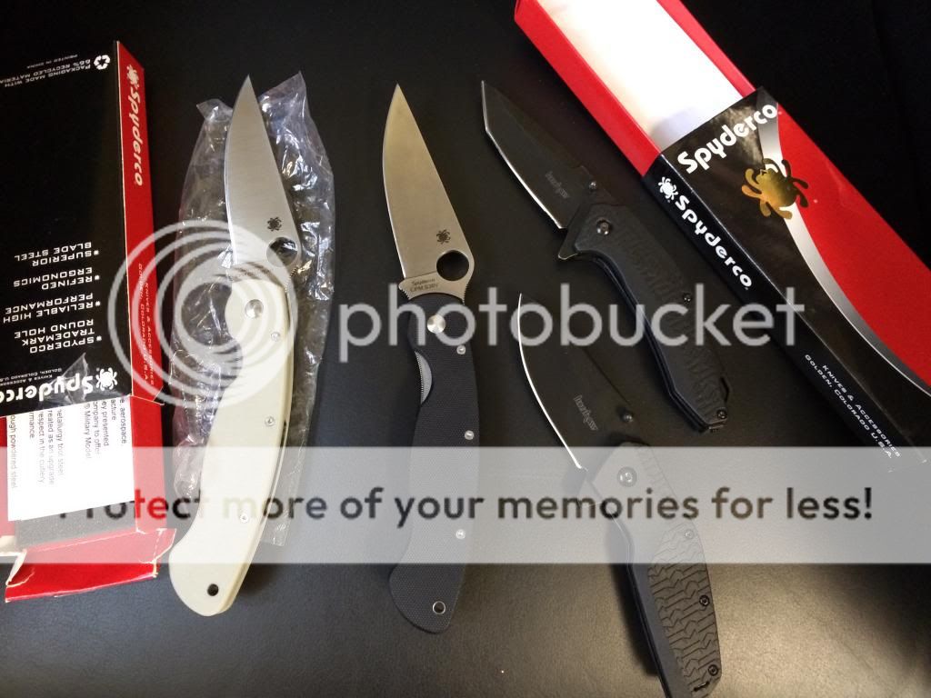 Next is a combo pack deal.. Lightly carried and used S30v, black G10 Millie. I have sharpened it a couple times.. Centering is ever so slightly off to the non clip side. Call it 52/48.. Smooth as silk and a great knife.. This millie comes with 2 Kershaws..both lightly used, both solid knives and sharp. One is a Freefall and the other a Swerve.