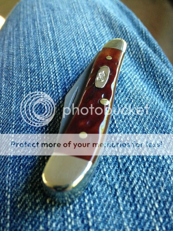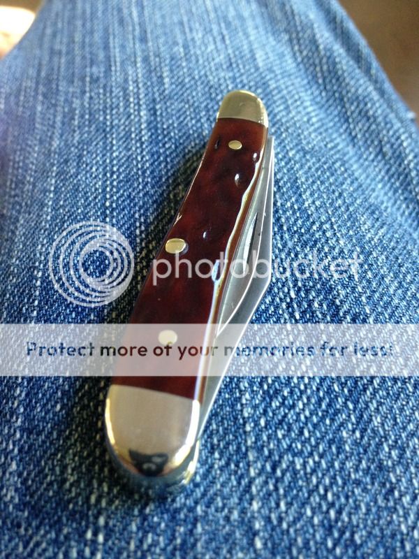 Thanks. Im not much for modding, im usually better at breaking things. but ill try and see if i can find any older camillus or schrades on the big auction site. My main problem with cases cv is just that it seems a bit soft to me. Everytime i use my peanut to eat steak it needs a quick sharpen. Not too big of a deal as sharpening takes maybe a full minute, but ive noticed a shrinking of my blades in the past 6 months or so as a result. If i cant find any ill just stick with my yeller nut. Or maybe pick up one in stag or bone... Well see