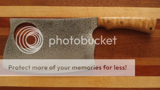 just finished this one for a customer in California. It's made from a recycled 30" buzz saw blade in 8670. Curly maple, white liners, micarta pins and tube. 13" overall and 8.25" convexed edge.