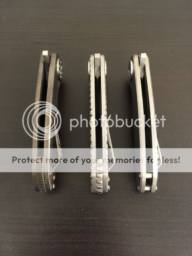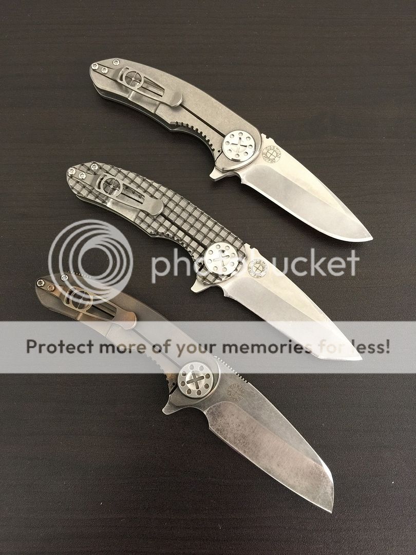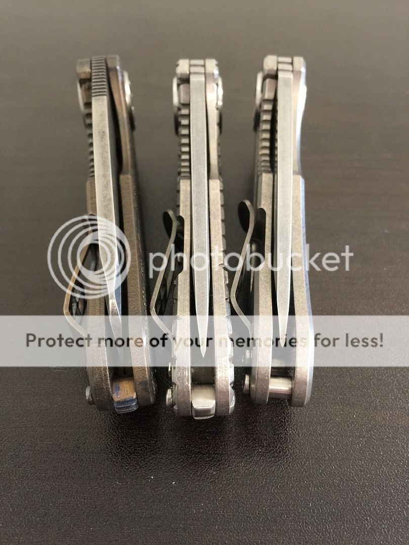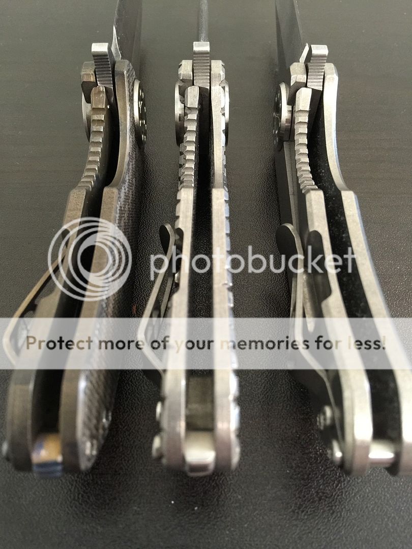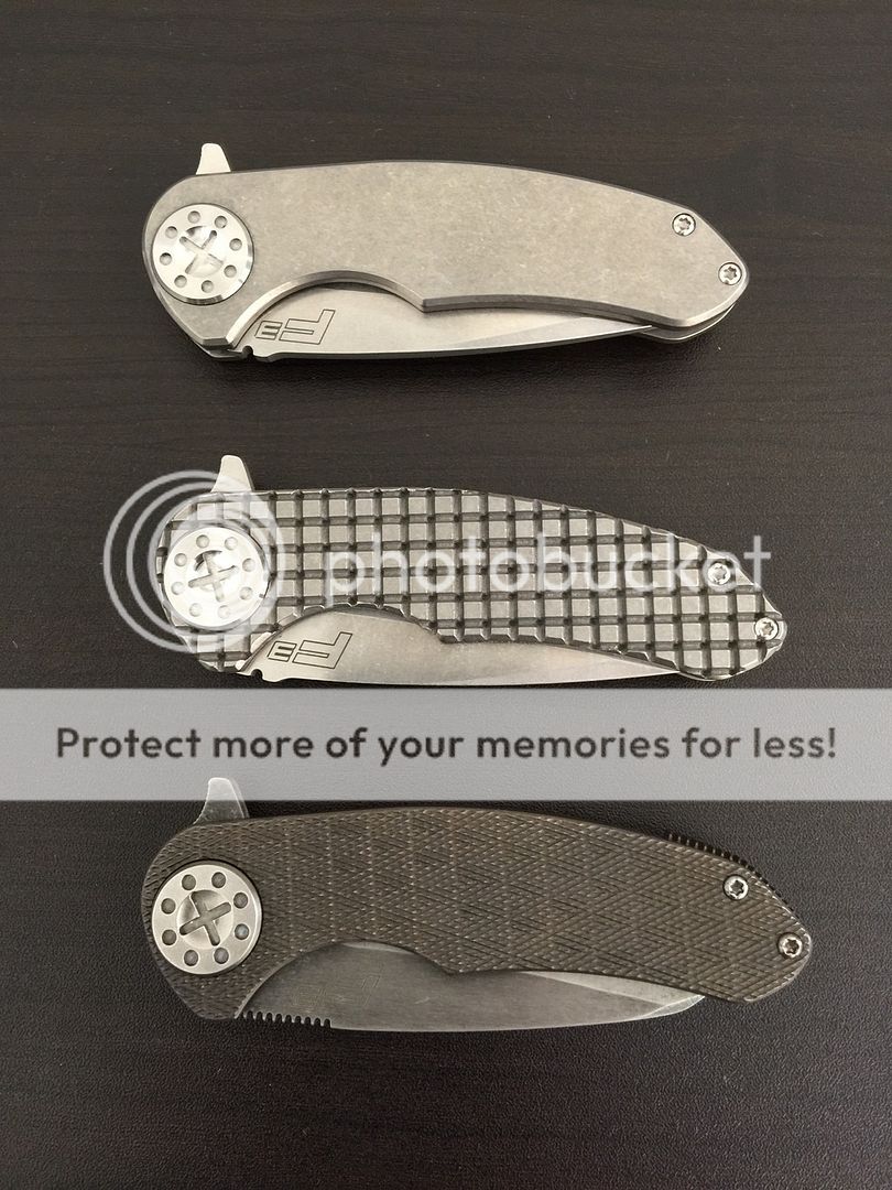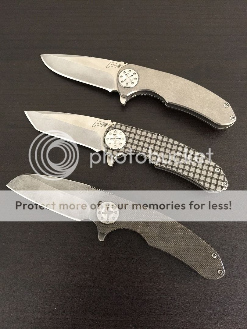 Disclaimers on the other two. The plain Jane very very tip of the blade is broken off. It is the very tip and I can send pics of requested. The Frag, which is one of only sixteen made was "professionally" sharpened. This moron actually changed the shape of the blade. It is now more of a tanto with a slight recurve than it is a spanto. This professional simply said that I should send it back to the maker because he was apparently having trouble. This is what I intended to do, however I've decided to let these go in favor of another purchase I'd like to make.