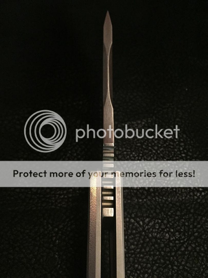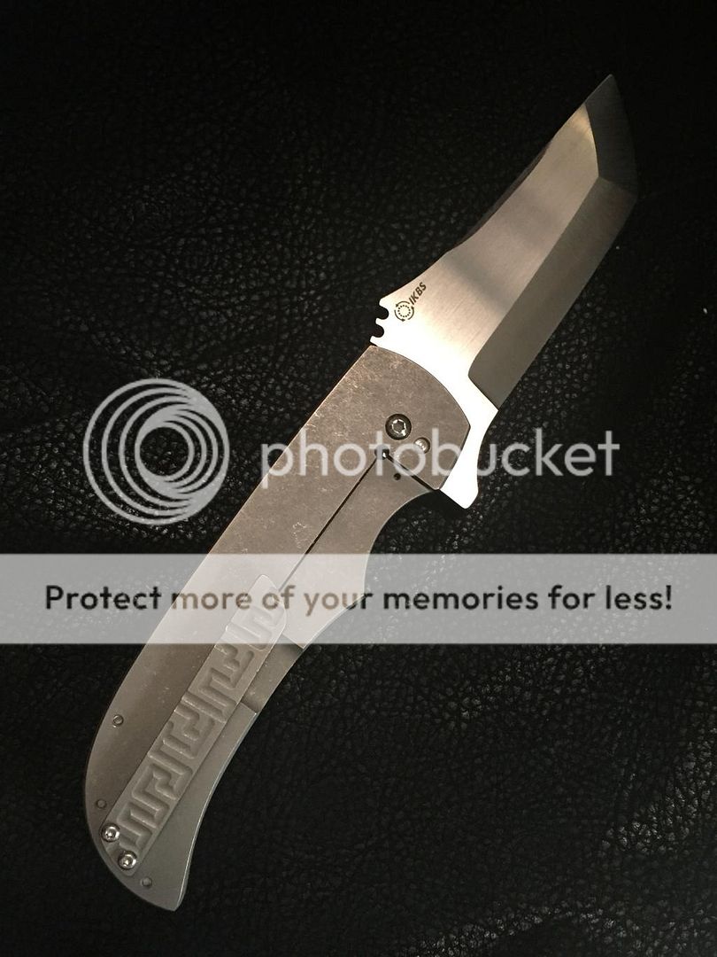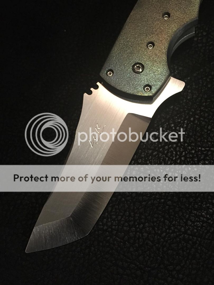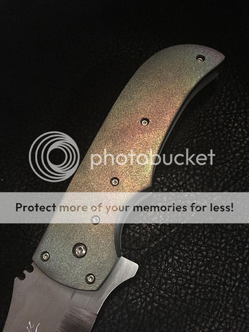 2. Pohan Leu Bluephin with full Zirconium presenation scale, Ti SW framelock with sculpted and milled maze pattern clip. Backspacer is g10. The blade is 3.75" and is .200" super thick S35VN with the squiggly line. Flips like a boss on IKBS and has a welcoming easy and smooth action. Pohan said that this was 1 of 10 made with the thick blades. There is no doubt about it, this blade is a beast. This one is fresh back from Pohan from a spa and is scary sharp. No Trades! SOLD shipped plus fees.