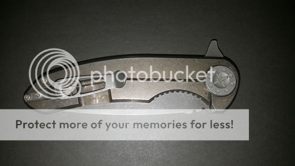I've got a Curtiss F3 Large for sale. I don't want to get rid of it but I've got another knife calling my name so I've made the decision to let this one go. It is second to me from another BF member. It's in great condition. I carried the piece for a bit but it didn't see much use. The knife has a nice bronze ano over tumbled titanium sides. The blade is M390 and is tumbled and then acid finished. The blade finish is incredibly durable. It has a nice edge on it, it was sharpened once on an edge pro apex to the angle from Dave. It flips out like a rocket and has solid lockup all the way around. There is very minor wearing of the ano by the flipper when it is open, it's hard to capture in the photos. No scratches on the handles, a single minor scratch on the blade under the "F3", also difficult to show in photos. This is a great example of Dave's work and in my opinion is worth more than he charges. I am asking $400 shipped to your door. I'll pay fees. PayPal only, NO TRADES at this time, please. First "I'll take it posted below followed by contacting me via PM or email gets it. If you would like more photos or have questions you can reach me at gibson2015@gmail.com