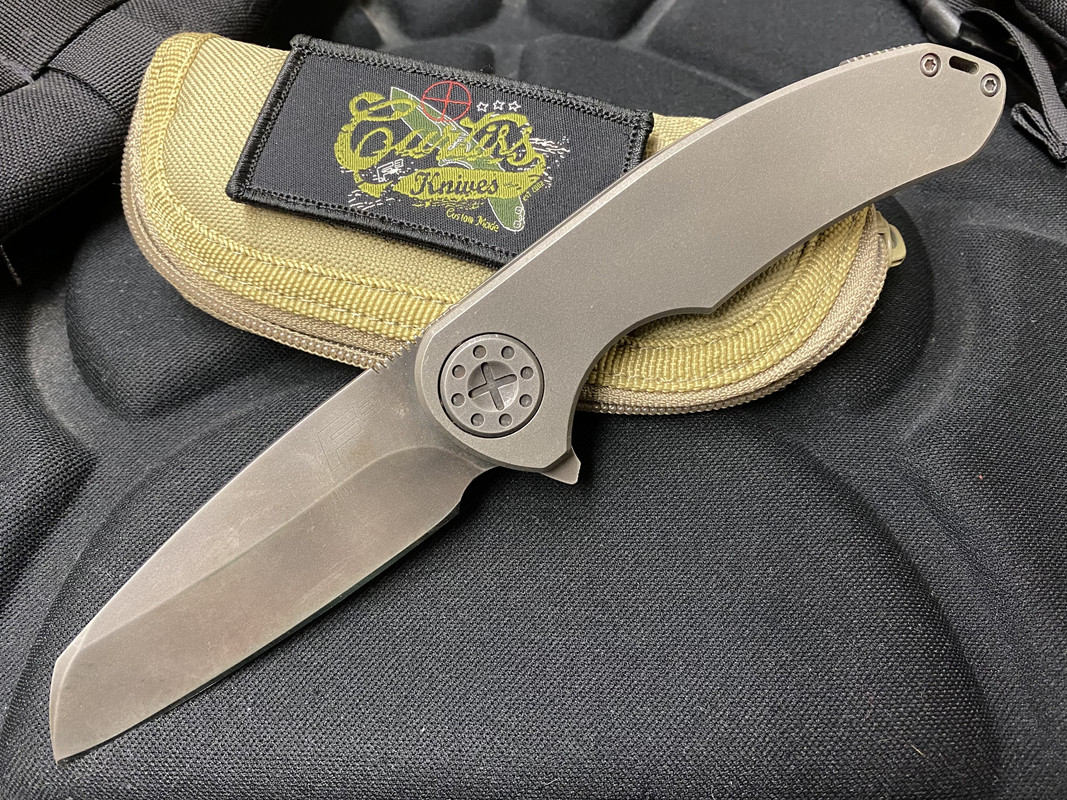 Large Curtiss F3 Wharncliffe in full Blackwash and CTS-XHP up for grabs. Has been used, carried, and sharpened. Lockup is solid at around 20%. Centering looks to be spot on. Detent is a little on the week side for my preference. Your opinion may vary. Includes padded case, patch, and COA. Please feel free to contact me with any picture requests or questions you may have.