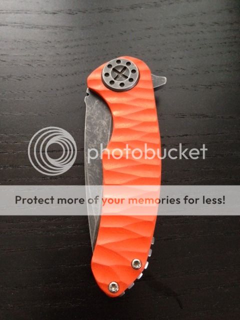 For Sale: Minty Curtiss F3 medium with orange g-10, titanium liner and lockside, with blackwashed blade and pivots. I got this new and sent it into Dave at Curtiss Knives to blackwash the blade and pivot. You don't see this combo often. Then I handsculpted the g-10 scale and polished it. I make scales professionally. You can trust the quality of my work I did to the g-10. I replaced one body screw. It is the same thread size and length (I checked with Dave), just a different torx side. The orginal screw got messed up during reassembly. The knife has a geared titanium backspacer on it as well. It has been pocketed 3 or 4 times and has only cut tape twice. The lockup and flipping actions are perfect. Only reason I'm selling this beauty is to pay for another F3 Dave is making me. Price drop $Sold Valued at $700 with custom work. I don't mind passing along a deal. (Free shipping to Con US)