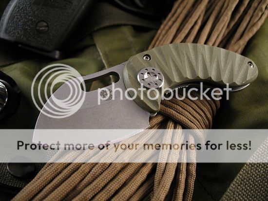 Sculpted Green G-10 / Stonewashed Frame & Blade - $285 One Left