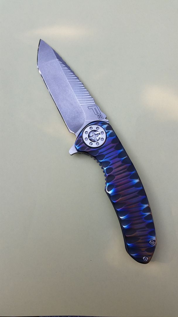 Has been lightly used and carried, but in very good condition. Blade is centered and has great action (no wrist needed). The best feature of the knife is the amazing "murdered" customization done by Chris Martin of Phantom Steelworks. Would make a great EDC.