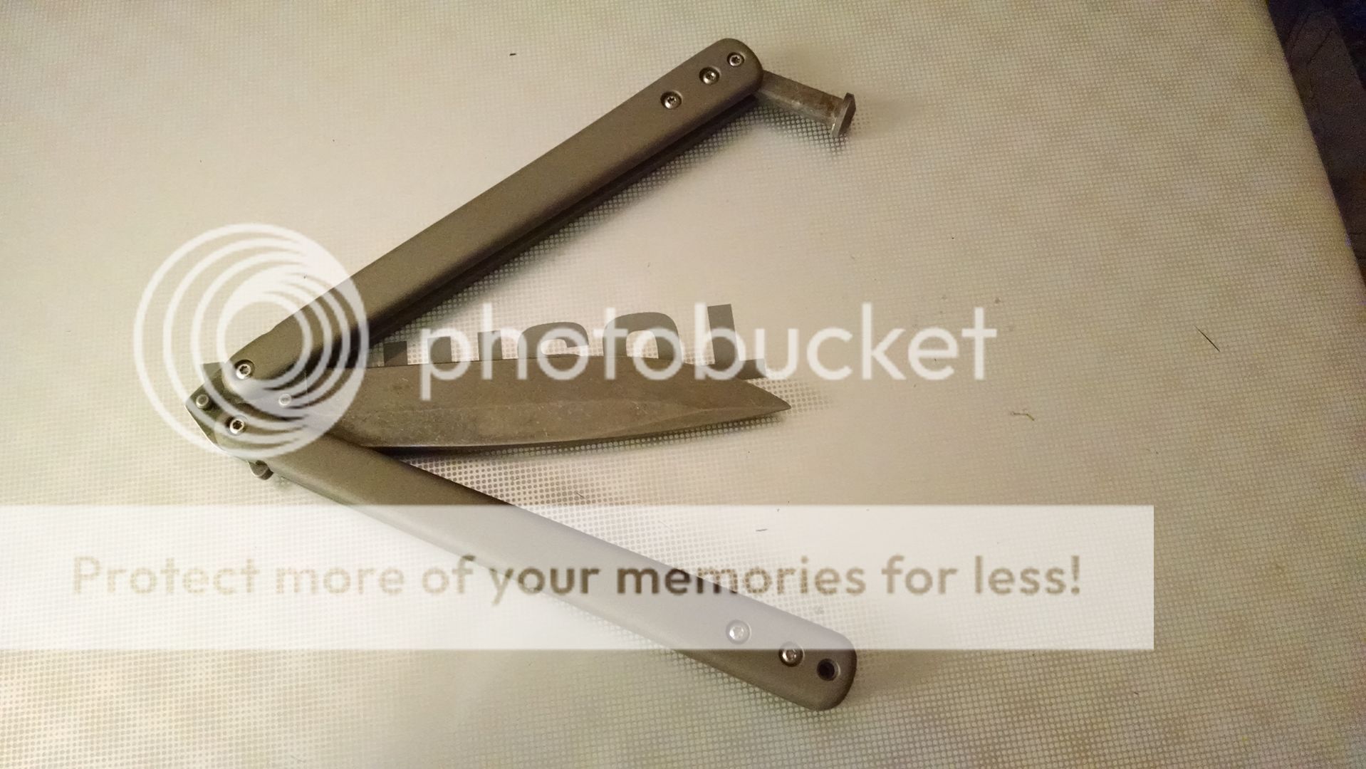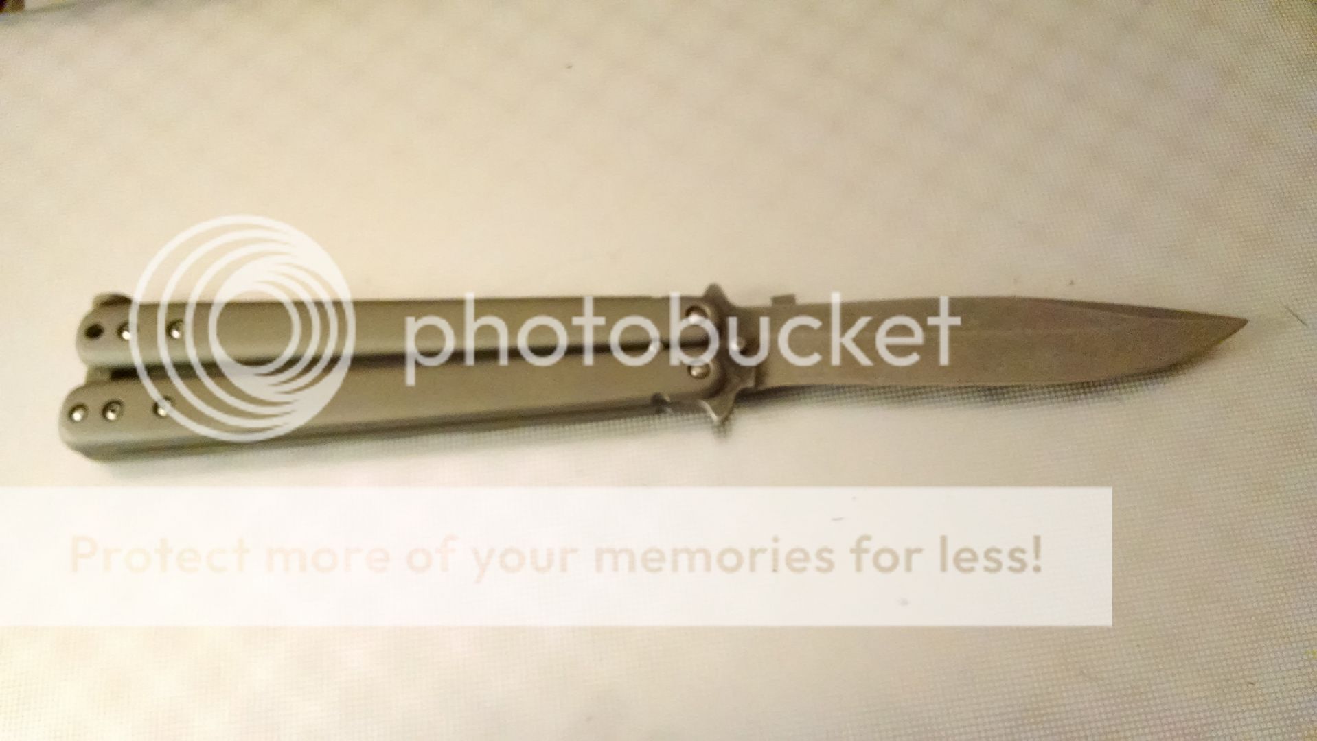 I bought this kit a while back. I have tried several different customizations with color and texture. This was the final choice and is one of the most basic and best looking combos. The blade was acid washed and then stone washed. The Ti handles were smoothed off and rounded over before a coarse sand blast. The titanium is nice and grippy this way. The kits come with a nice 440C blade, phosphor bronze washers and bushings, and all T6 construction plus a lot of other great details. All parts and pieces are made in the USA. I am not a professional knife builder and this was completely done with small hand tools so it is not a perfect knife. Some of the screw heads show wear from the different times of customization and taking it apart several times to fit items better. It was never carried or used, but it has been sharpened. Locks tight in the open and closed position. All in all, it is a nice looking one off style knife, but I am just not much of a bali flipper any more. This is a CONUS and PayPal only sale. I ship via USPS Priority with insurance. I cover PayPal fees and all shipping costs. The price listed is the price you pay TYD.