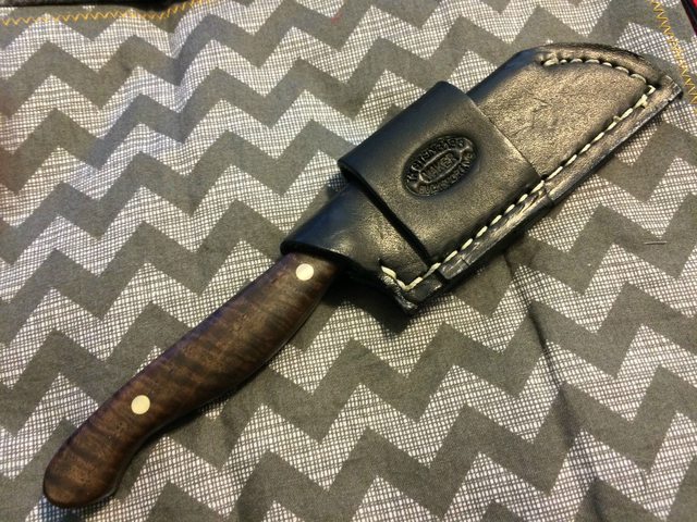 Handle: Ironwood, black and yellow liners, poorly done mosaic pins.