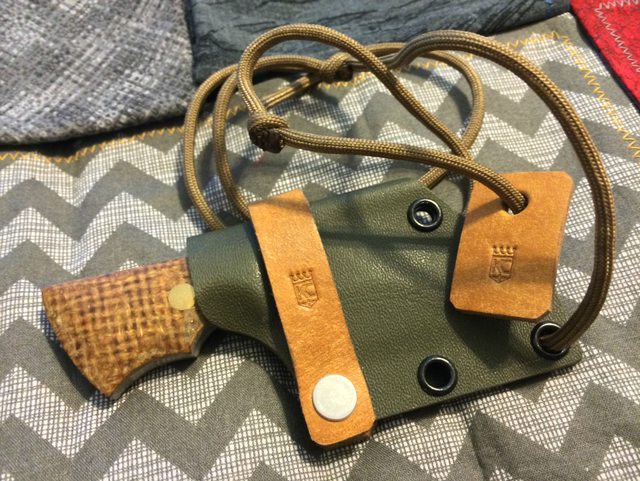 Sheath: Kydex and leather with paracord