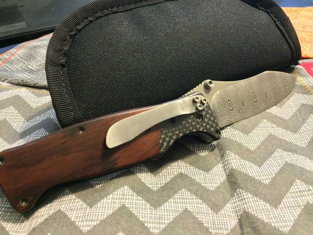 Pocket clip: Stainless Damascus, matches blade