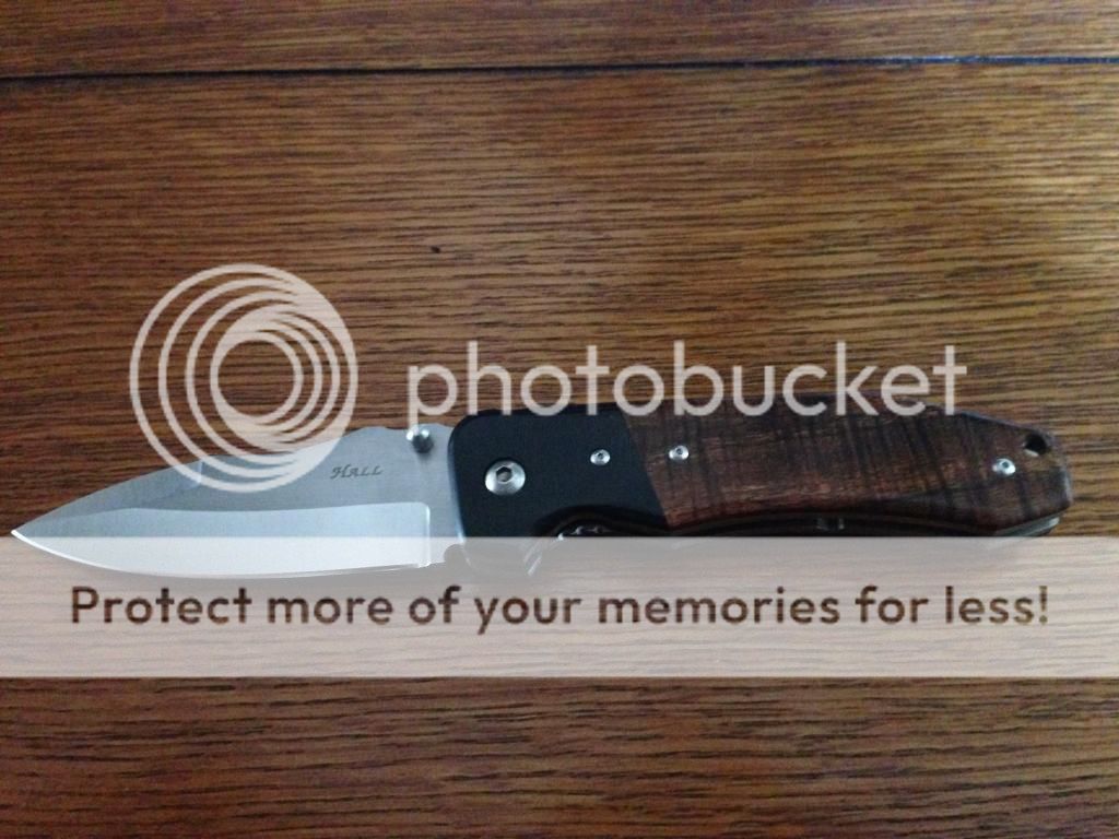 1.) Jeff Hall Bounty Hunter. Never used, like new condition. 3.75 inch S30v blade, Beautiful Koa wood scales, with CF bolsters. Very stout titanium liners. Very smooth locks up like a tank. $400