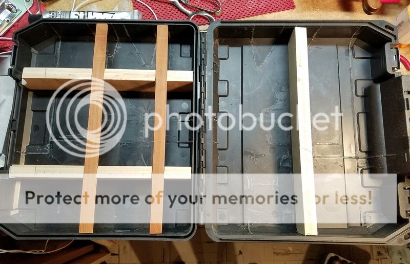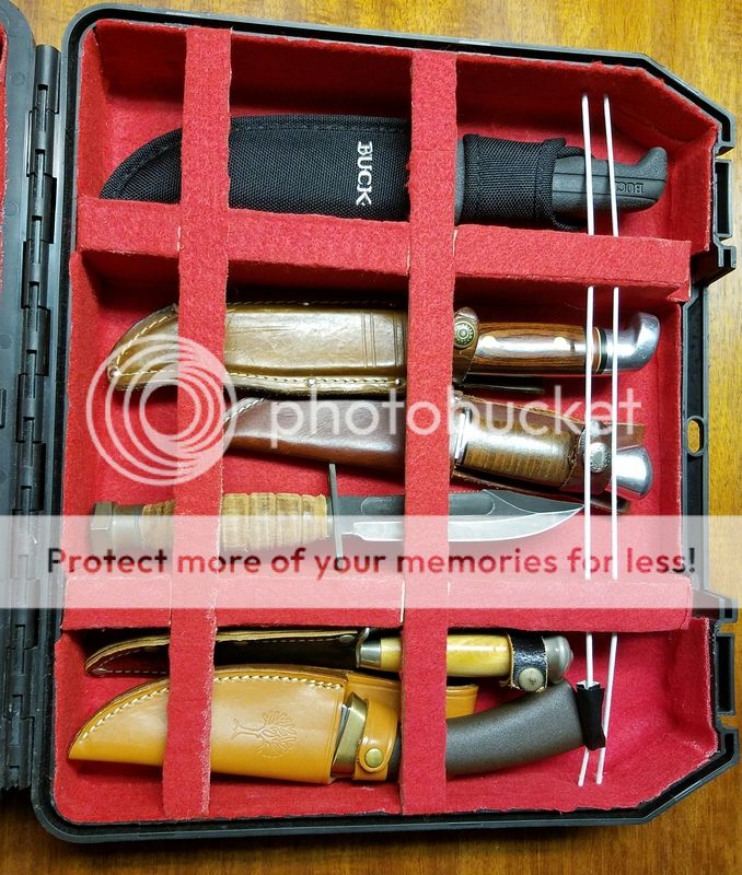 I thought I would share my knife storage project. I go to a lot of gun shows and flea markets in search of knives, and other treasures. I am always looking for a good way to safely carry knives that I might sell or trade, and of course a way to store the ones I buy. I also need a good way to store knives at home. So when I saw this DeWalt drill case laying around, I started to think about its potential as a knife case. The plans / design changed many times. Here is the finished project, scroll down to see how it came to be.