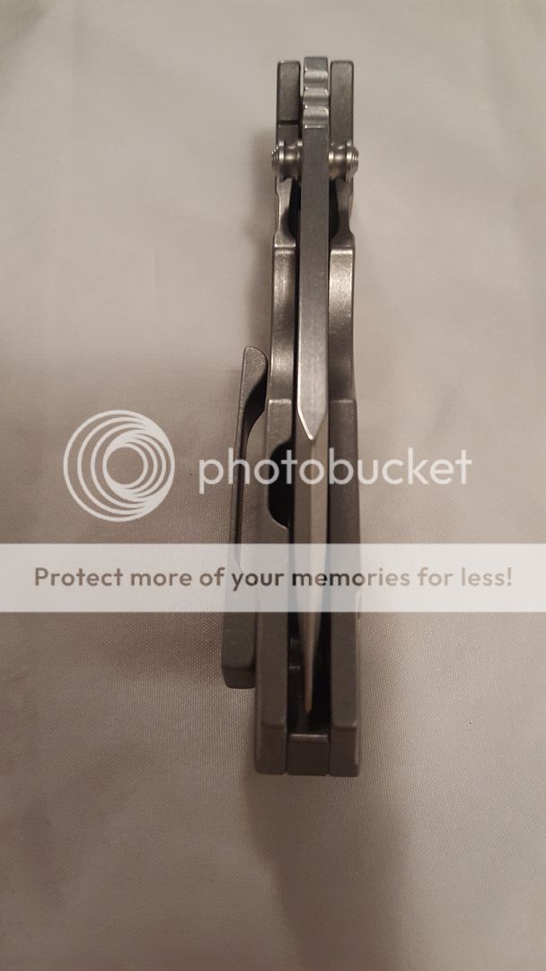 1. TK Knifes Custom Kyre. Wonderful knife with solid lock-up, no blade play and great action. Bronze skeletonized presentation side, floating timascus backspacer and comes with two clips (one sculpted and the other a deep carry). Great knife and has just gotten smoother since i got her, but hasn't left my house so decided to let it go.