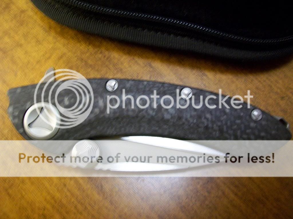 I have for sale a LNIB Custom Marfione Tri Tone Whale Shark. This has been carried a couple times, however you would never be able to tell as its in impeccable condition. It has never cut anything other than paper and still retains its factory edge. This is my last custom and I never thought I would sell it but tough times are here and knives come and go sometimes. The knife is perfectly centered and flies out when push buttoned, but can be light switched as well. Blade steel is S35VN and the finish on the blade is almost a cracked ice appearance as its almost mirrored yet stonewashed. It has 30K carbon fiber handles making this knife light and beautiful. Comes in the zippered pouch. Price is Sold