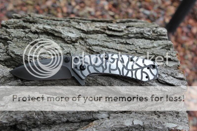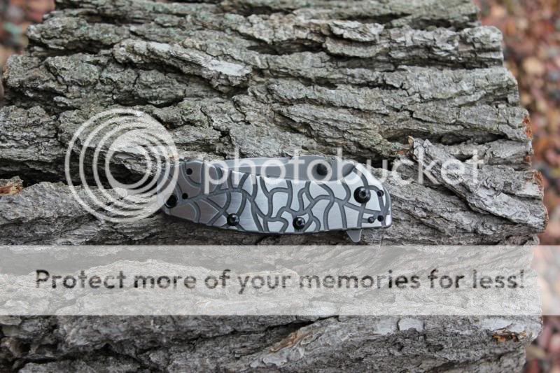 It has a CNC milled "River Rock" pattern into the scale. After that the scale was acid washed and then the high flat spots where polished. The lock bar scale and blade where both stone washed. The edge was restored at the factory angle with a mirror polish