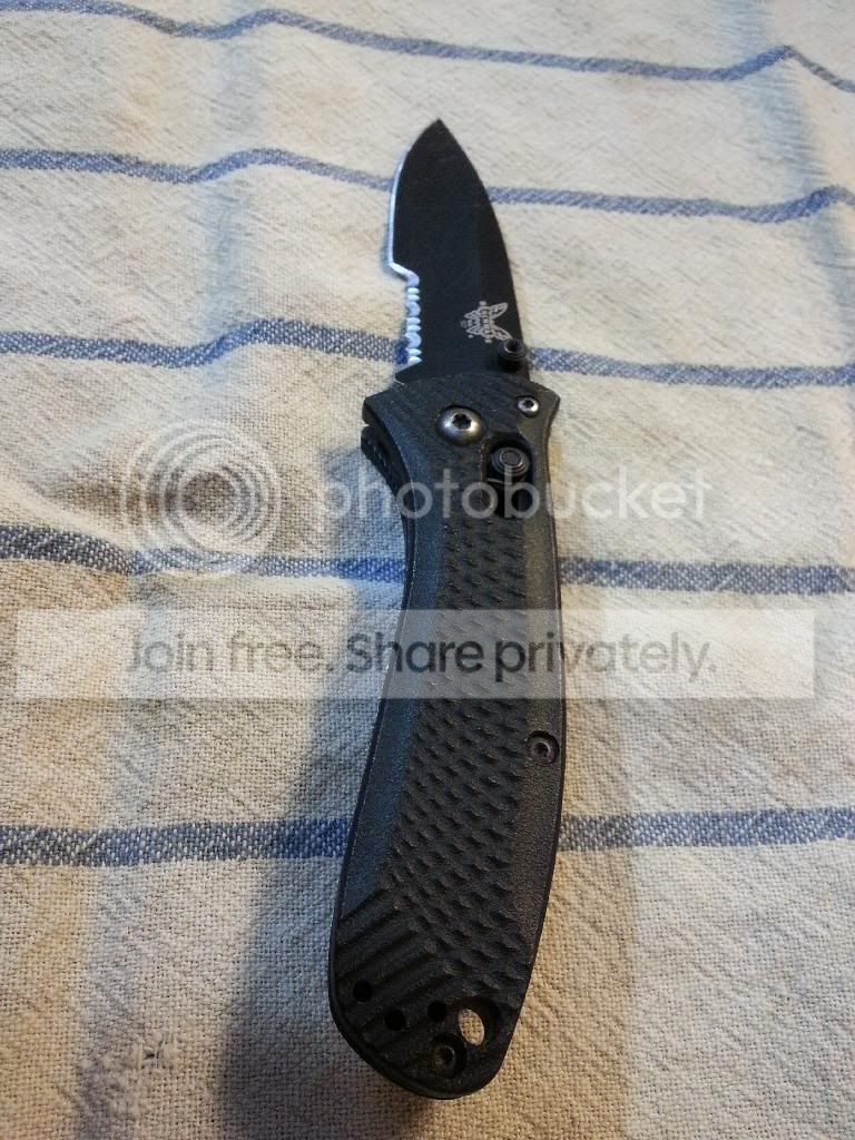 First up in a Benchmade mini-presidio 440C combo edge used and carried gently. Serrations sharpened with a Smith's diamond rod and are sharp. Omega spring is solid and opens and closes smoothly.