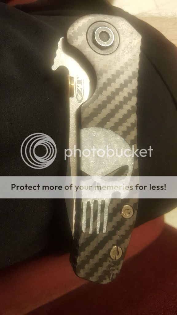I have a used but not abused zt 0630 custom that I would like to sell. Been a great knife just looking g for something different now. It has a custom carbon fiber scale, anodized titanium screws and a 45 auto thumb stub. As you can see in the pics the blade has some wear but is sharp as a razor. Also the blade rides to the scale side but doesn't rub at all.
