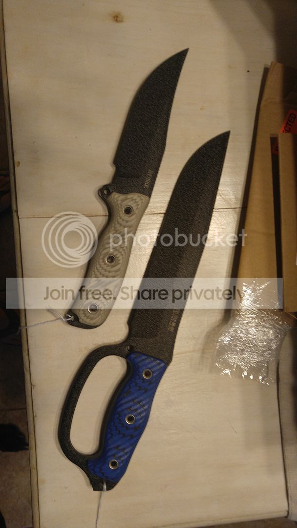 Bruiser battle grade d guard battle mistress, recurved in my mystery box. PayPal only $360 shipped. Price tag says $412, to your door for $360. I have a black leather savage sheath for it available for 75 only with the knife, i will keep it if it's not wanted by the buyer.
