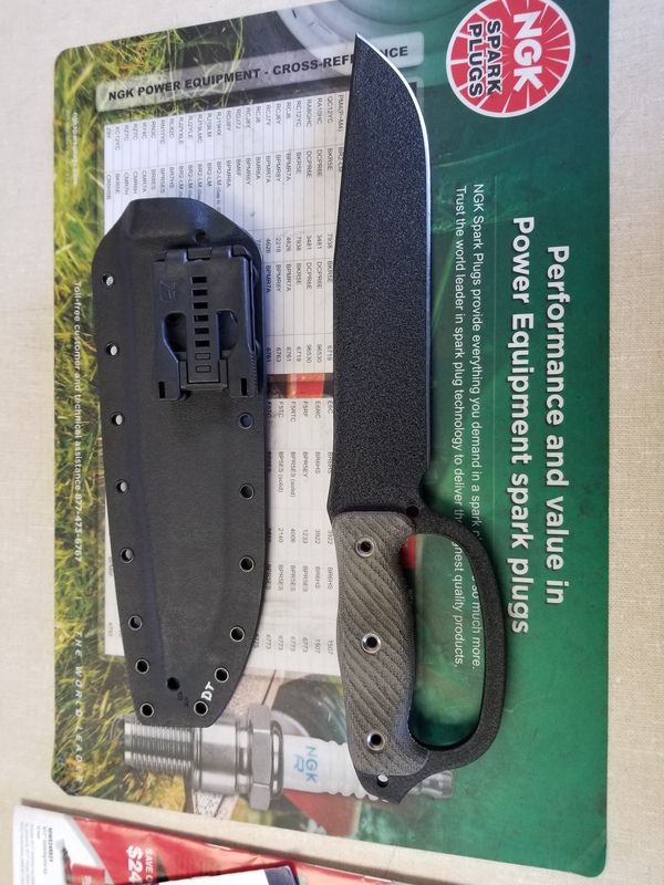 D-Guard Battle Mistress with Buybrown sheath... I'm looking to trade for a BG FBM... my knife is unused but has been sheathed so it shows some smoothing....