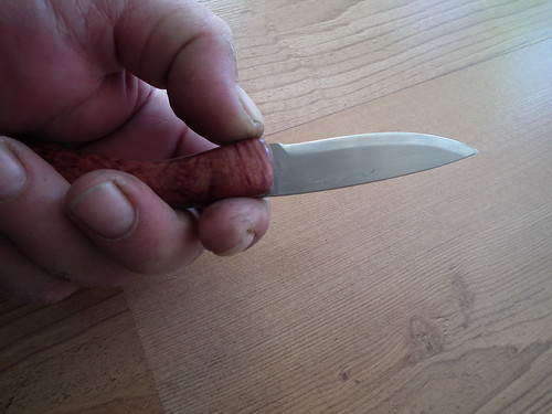 D2 folder knife ( EDC for me), thickness is 1.5 mm. Total lenght is 150 mm. Handle, is a kind of Anatolian tree (root) "Santalum album ", Turkish name is "sandal". Hardness 62 HRC. Thanks for Watching.