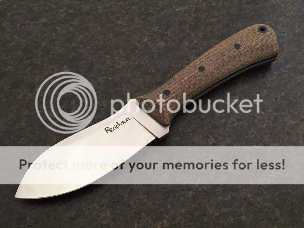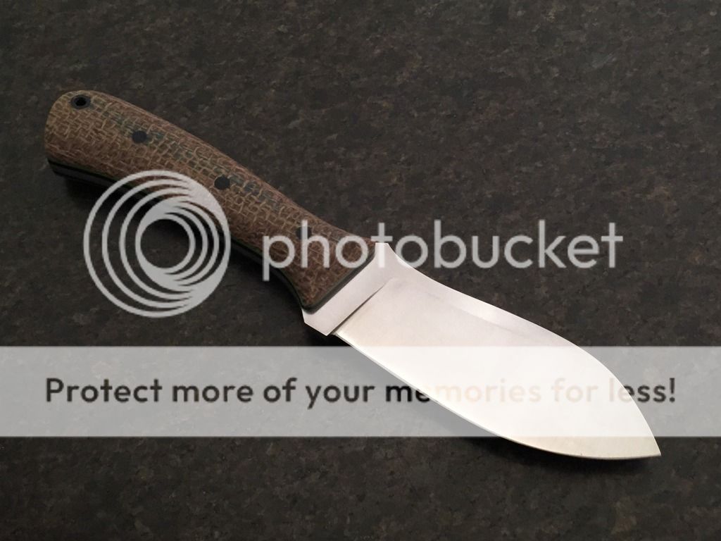 Blade: 4" with a high flat grind and 400 grit cork belt satin finish. Edge is 0.015 before sharpening.
