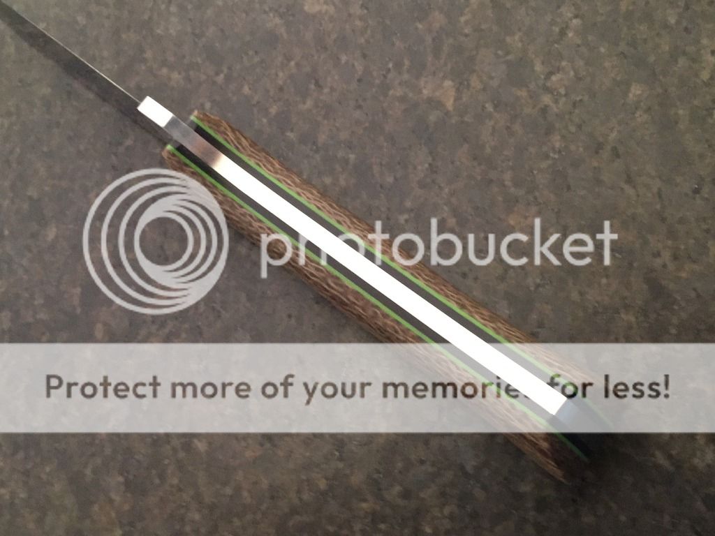 Handle: Shadetree Coffee Bag phenolic with black and lime G10 liners and black micarta pins