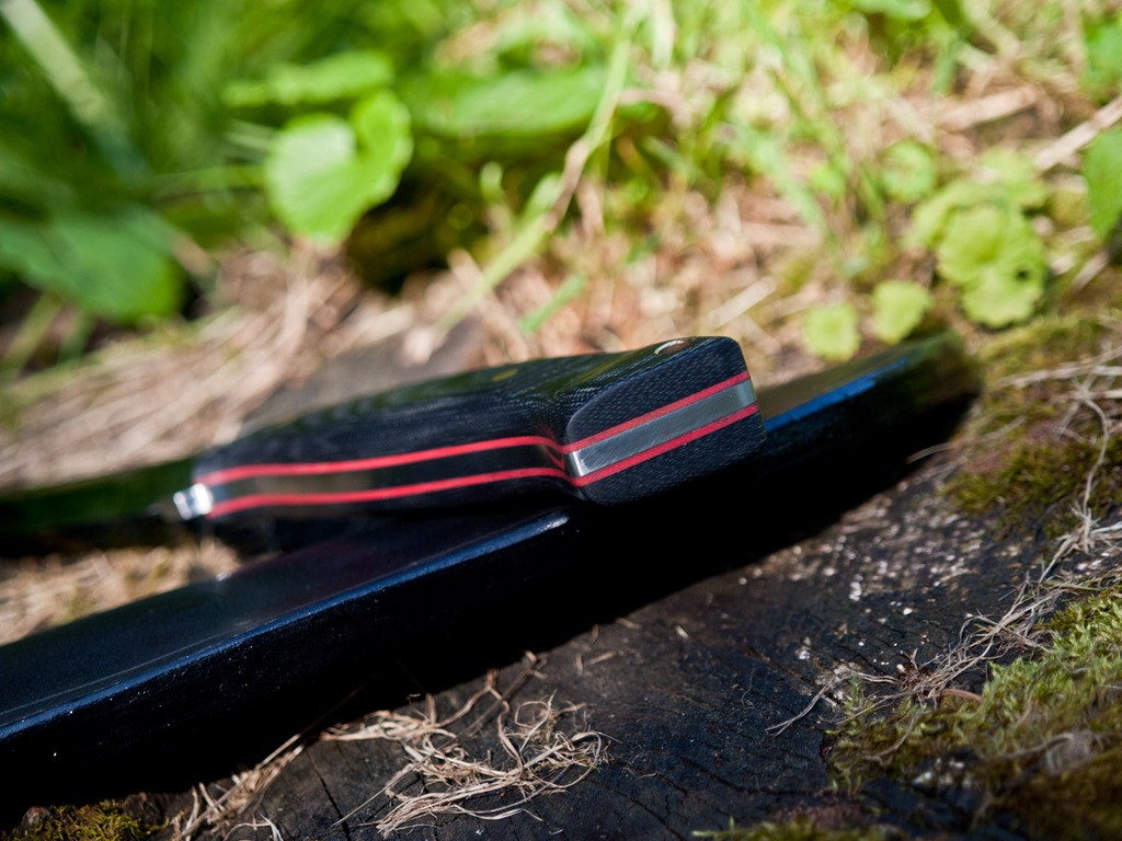 Handle- Black micarta with red g10 liners