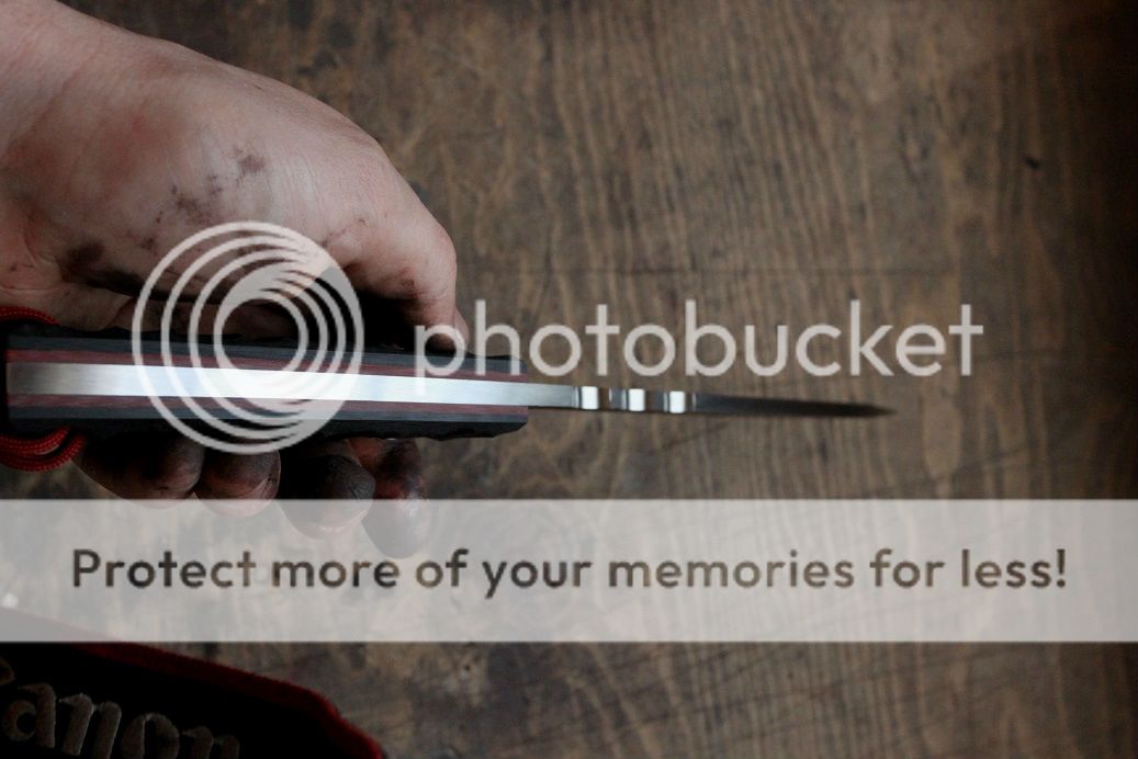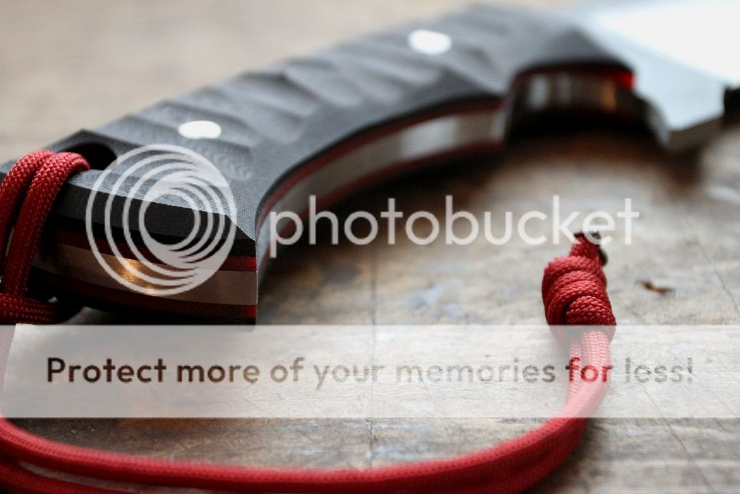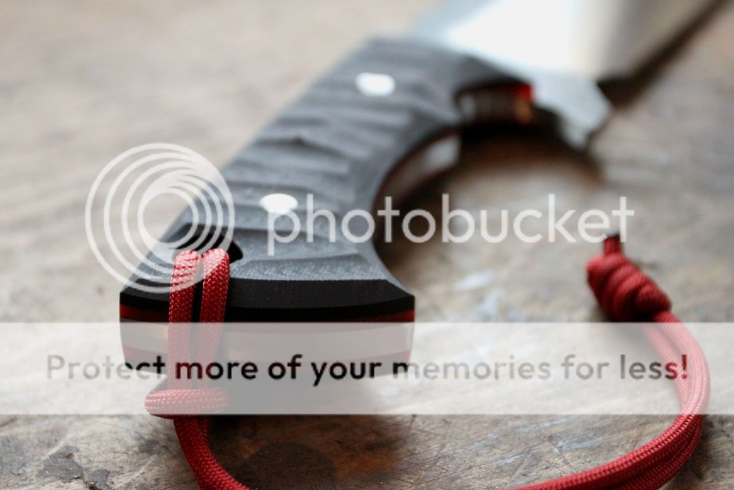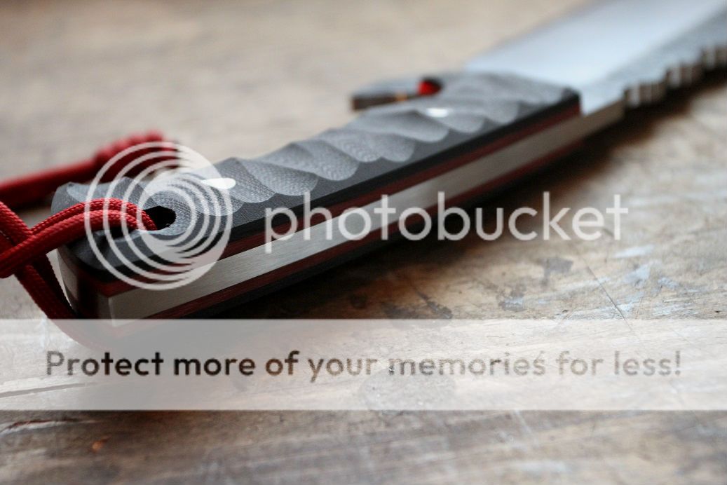 blood red liners with black G-10 scales done in random rock pattern.