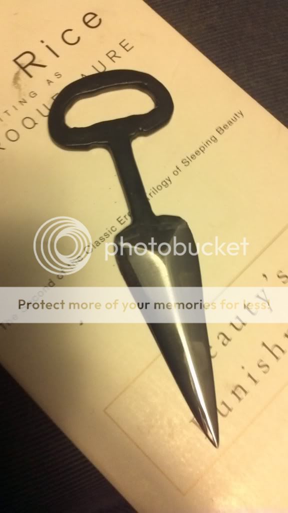 one made. Aus8A Double Edged Blade of 5 1/4". Overall length of 9 3/8". Stainless Steel guard and pommel.Close grained ebony handle.