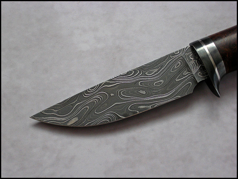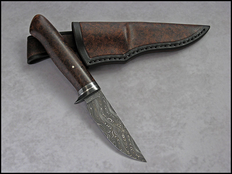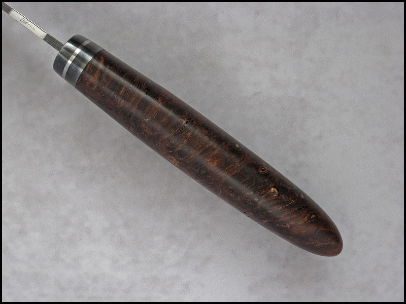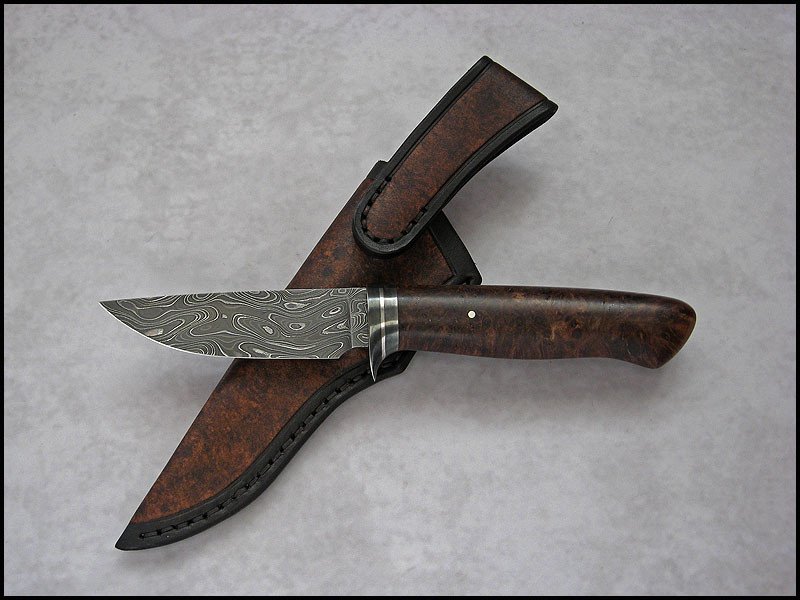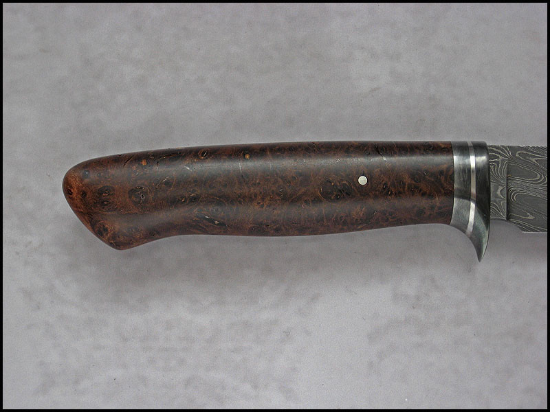 handle 1018 carbon steel, stainless steel, stabilized Maple Burl, nickel silver pin