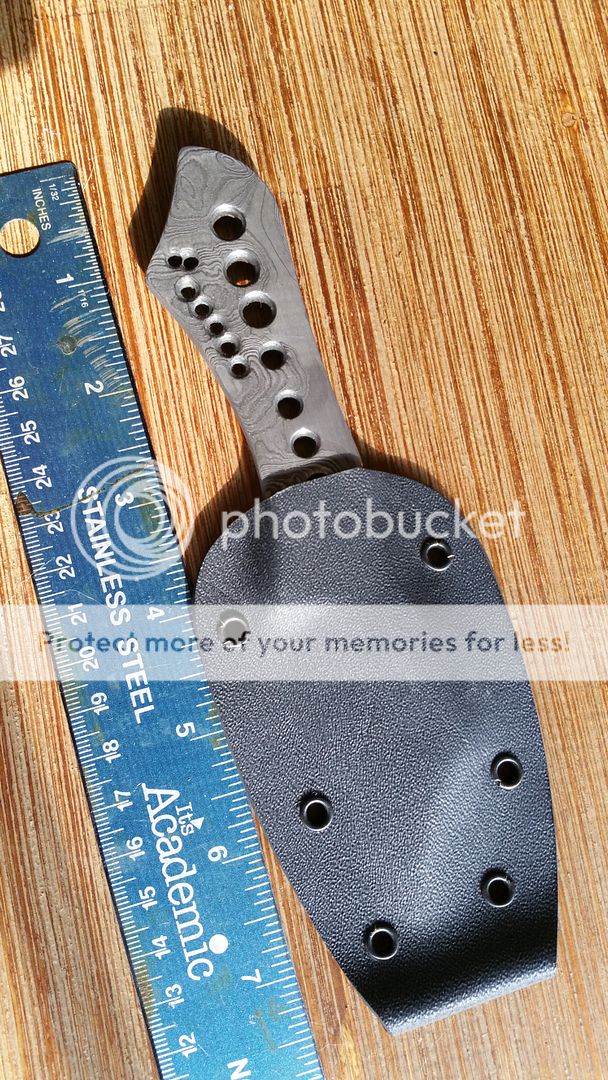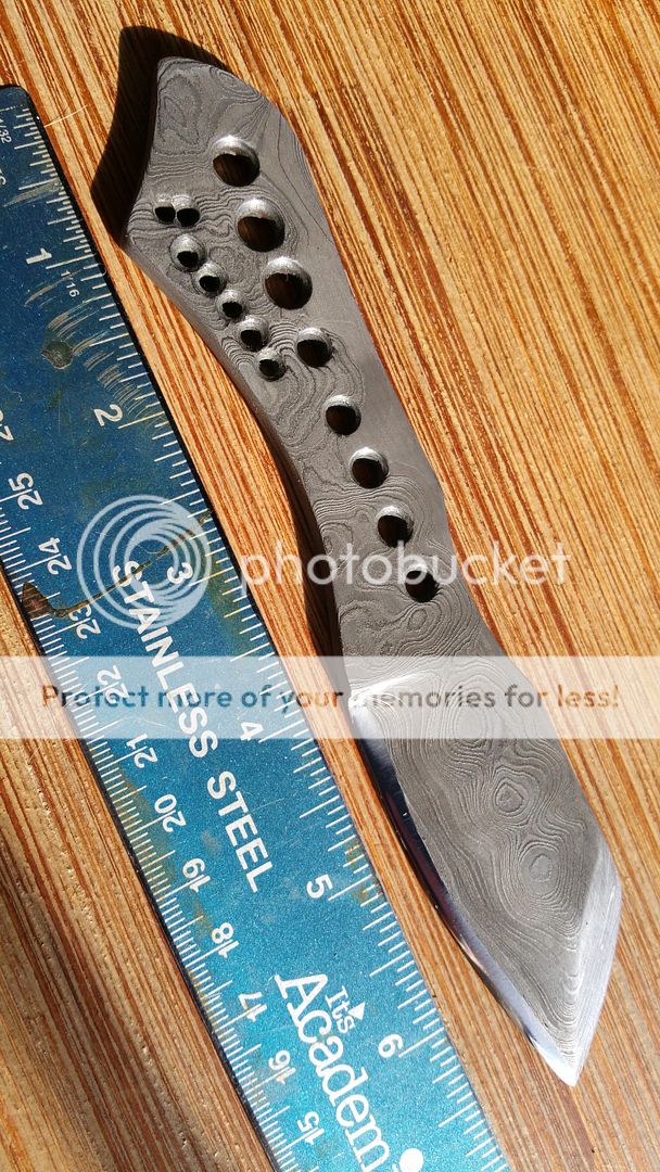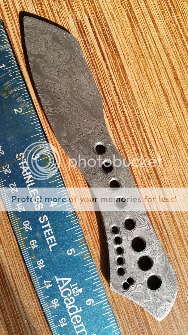 Made of Brad Vice damascus @ .160" ... has a slight bend at the tang before the edge starts. Blade is straight. Because of this, I'm letting it go for $100. I eat fees and shipping.