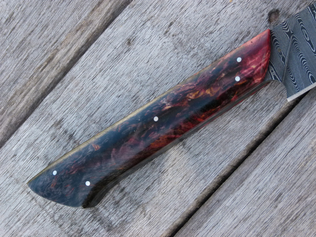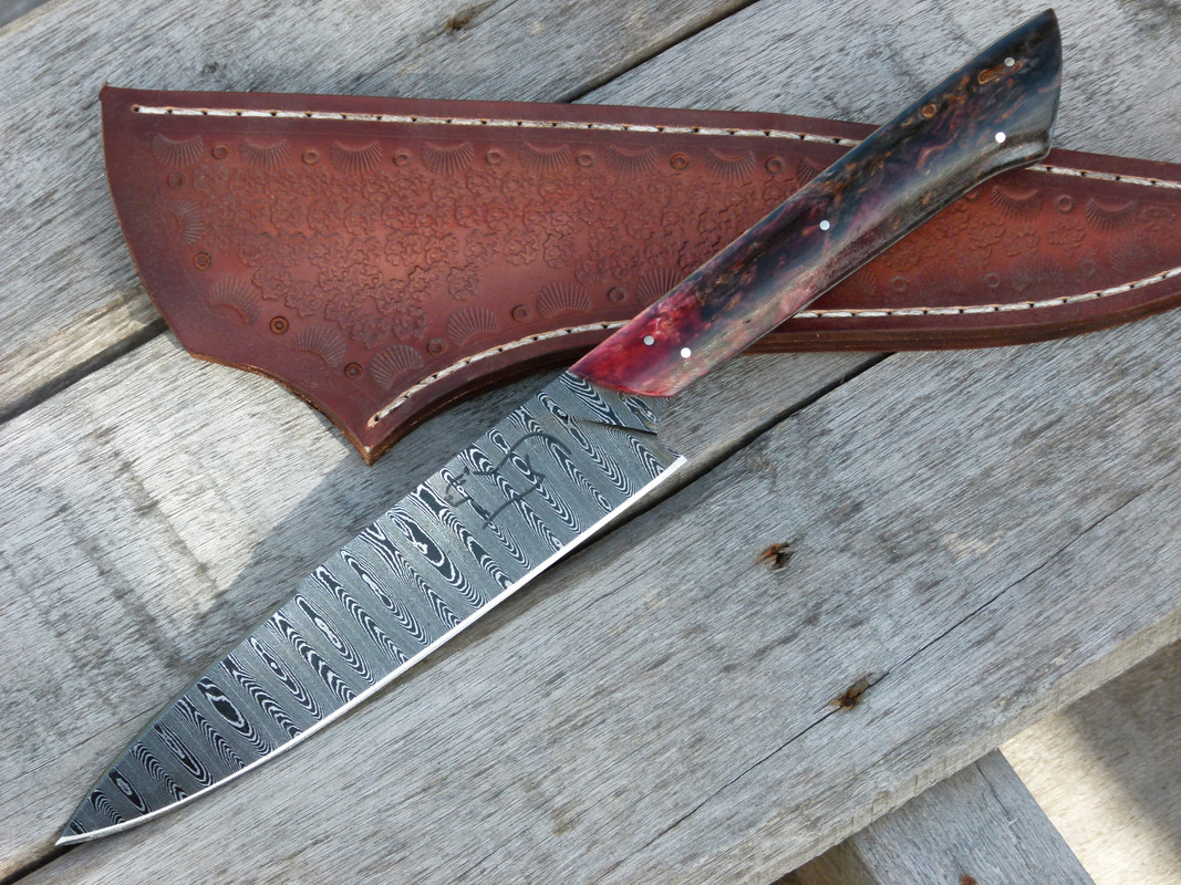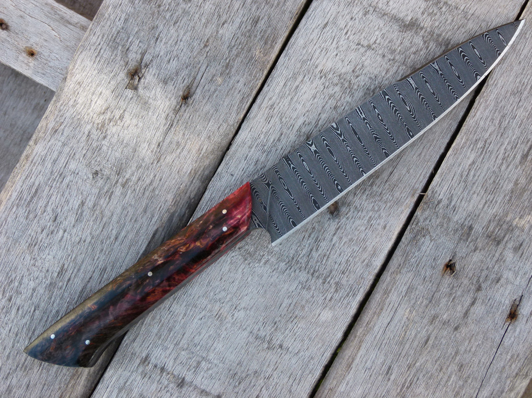 Good morning, I have this knife available that I make in damascus steel, composed of 1070 and 15n20. ladder pattern.