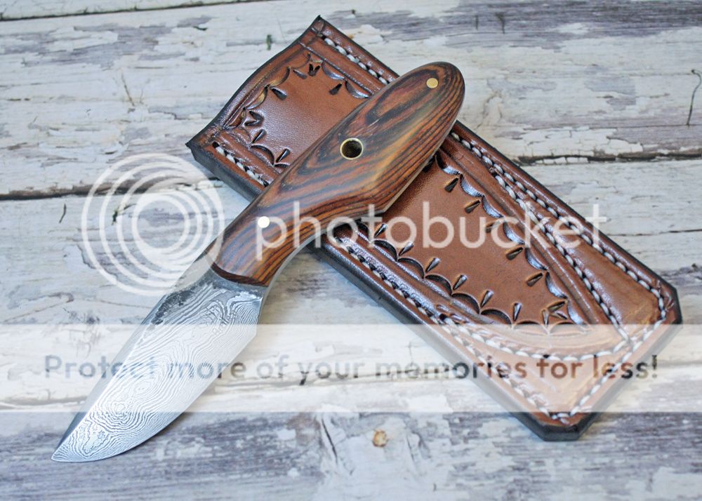 The sheath is 7-8oz hand tooled leather from Wickett and Craig. It is made to slip in the pocket like a cell phone.