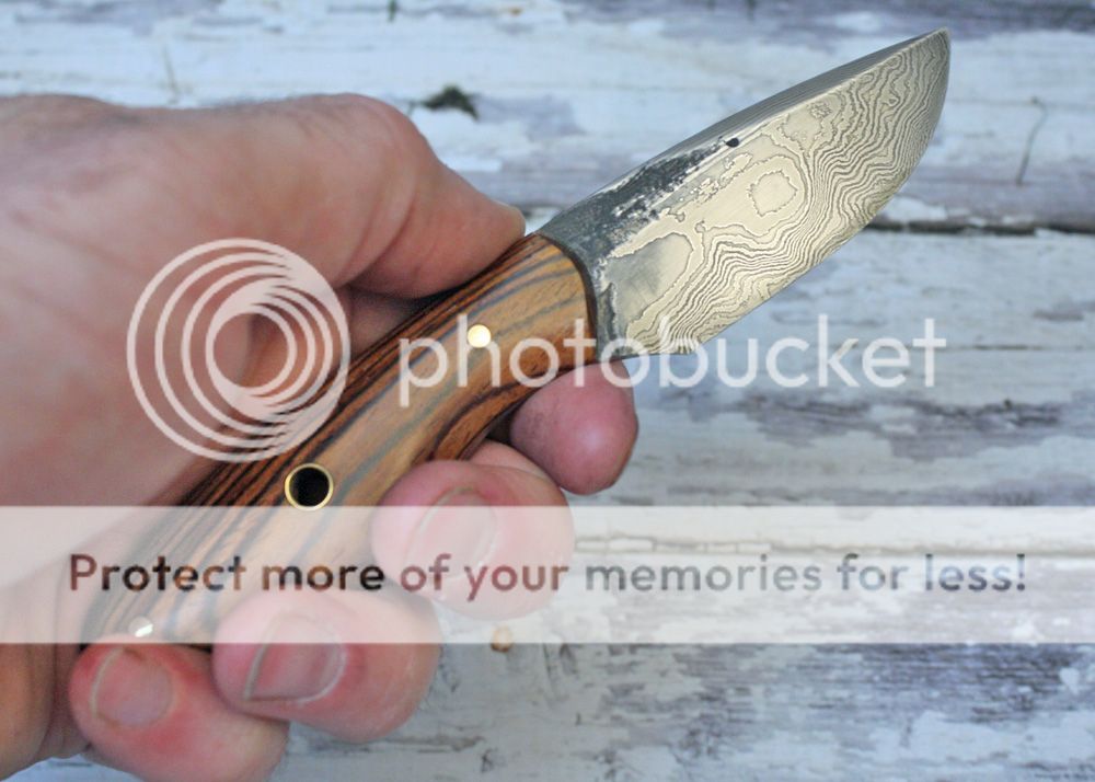 Here is a pocket fixed blade in 200 layer damascus. It is 1095 and 15N20. The blade is hand sanded to 800 grit and etched to bring out the details.
